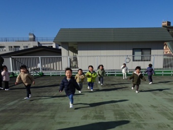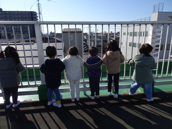 屋上で周りの景色を見たり、元気いっぱい走り回って遊んだよ!